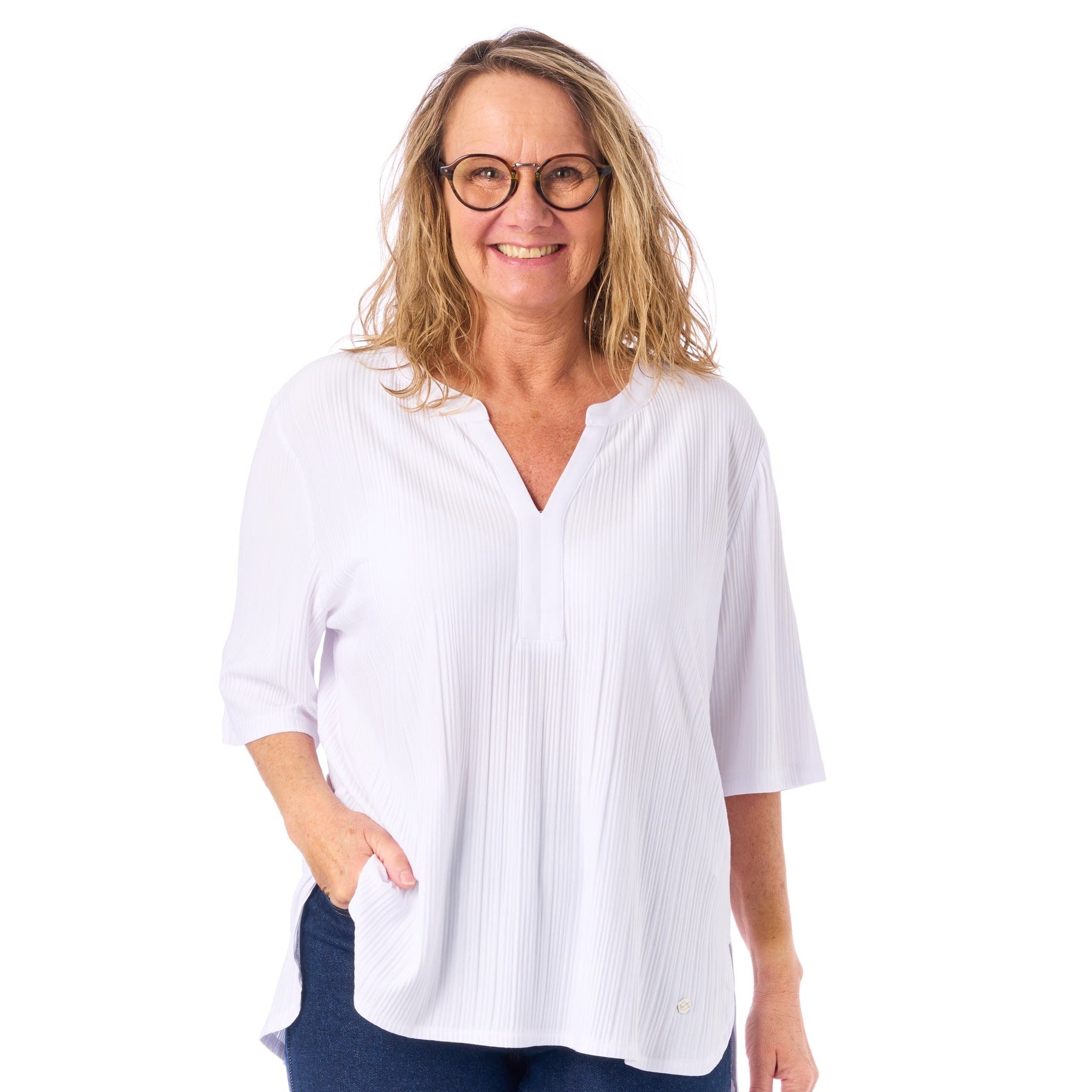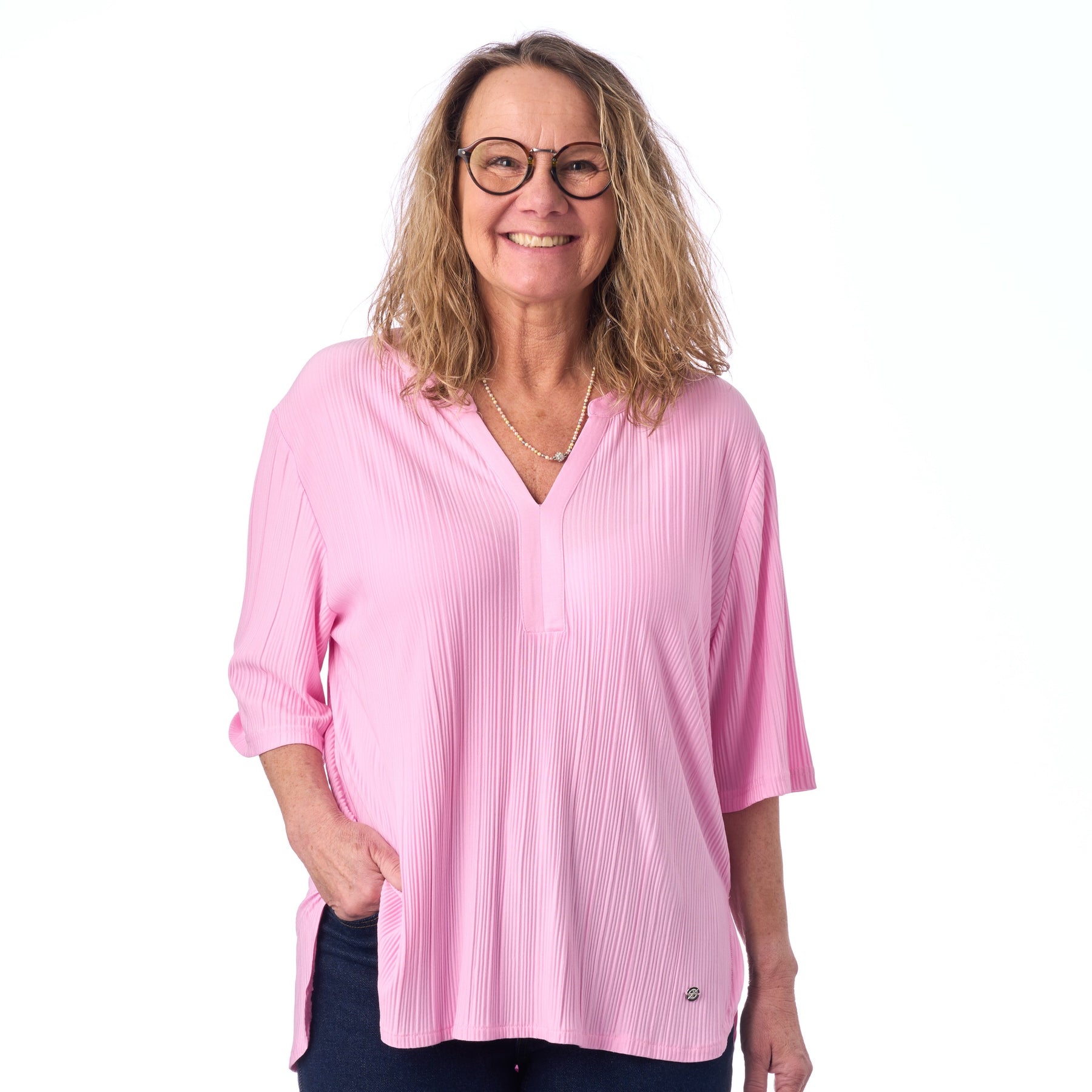 Den fina V-ringningen ger ett feminint och flatterande uttryck. V-formen förlänger visuellt din hals och öppnar upp kring ditt ansikte — så du alltid ser fräsch och välklädd ut, oavsett om det är till vardags eller en kväll ute.