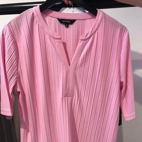 Tygets ribbade struktur ger blusen ett exklusivt och genomtänkt look. Det lyfter den från en vanlig blus till något som ser dyrare ut än den är — och det ribbade mönstret ser till att tyget faller ännu vackrare.