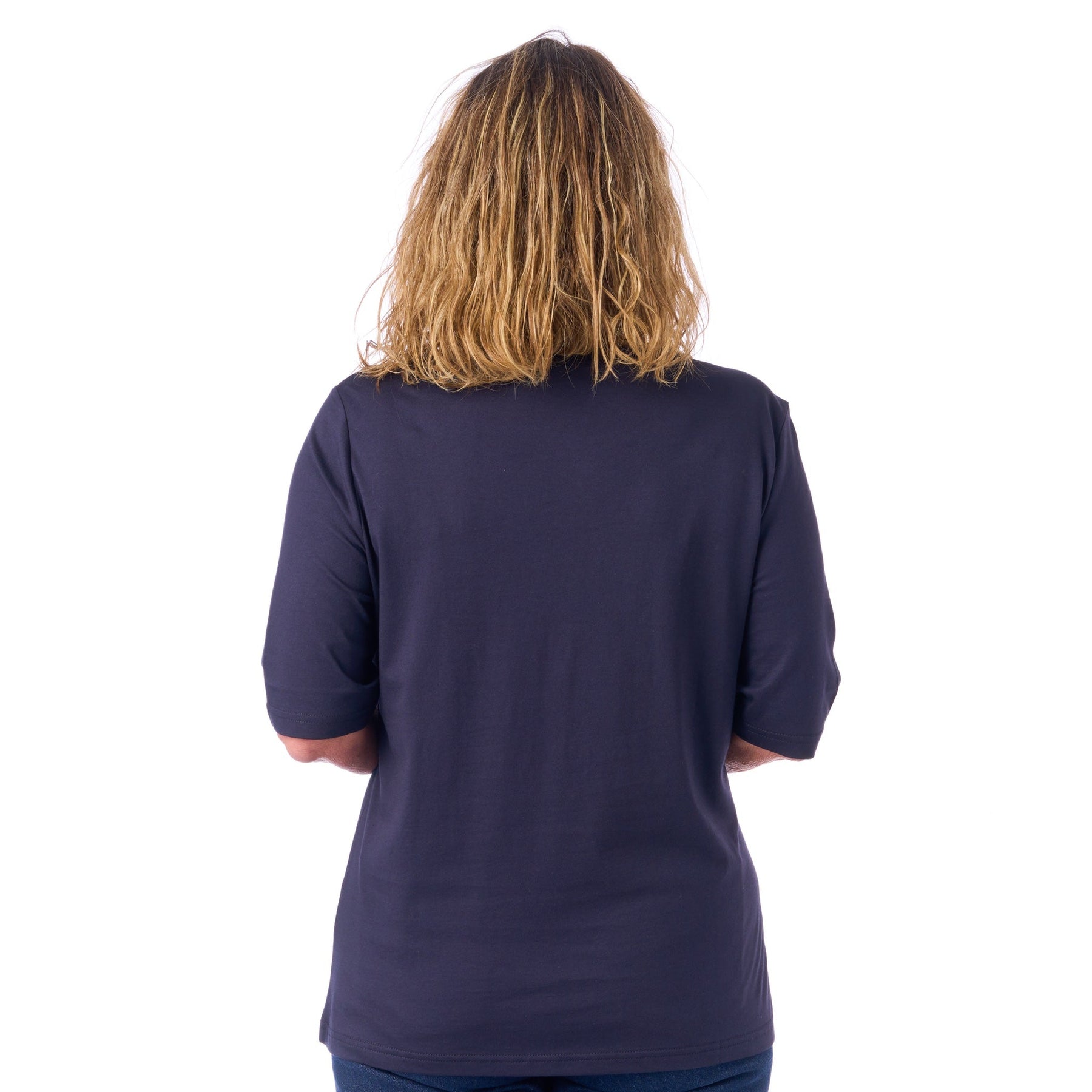 Ärmarna går till strax ovanför armbågen, vilket ger en avslappnad och stilren längd. Det är en längd som fungerar till allt — från en avslappnad lördag