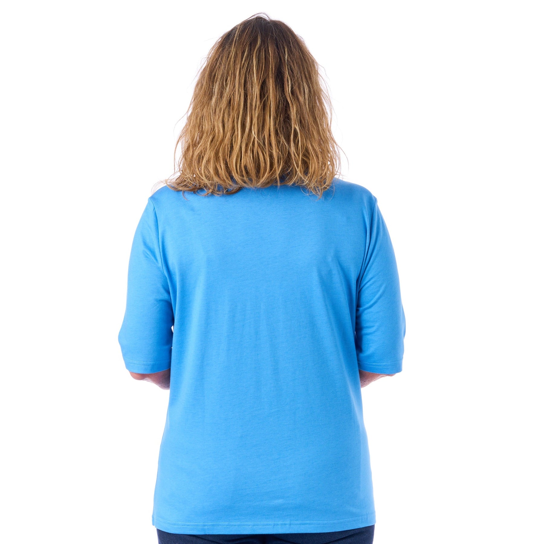 T-shirten är gjord av 50% bomull och 50% modal. Modal är en lyxversion av viskos som är extra mjuk och slät. Tillsammans med bomullen ger det en t-shirt