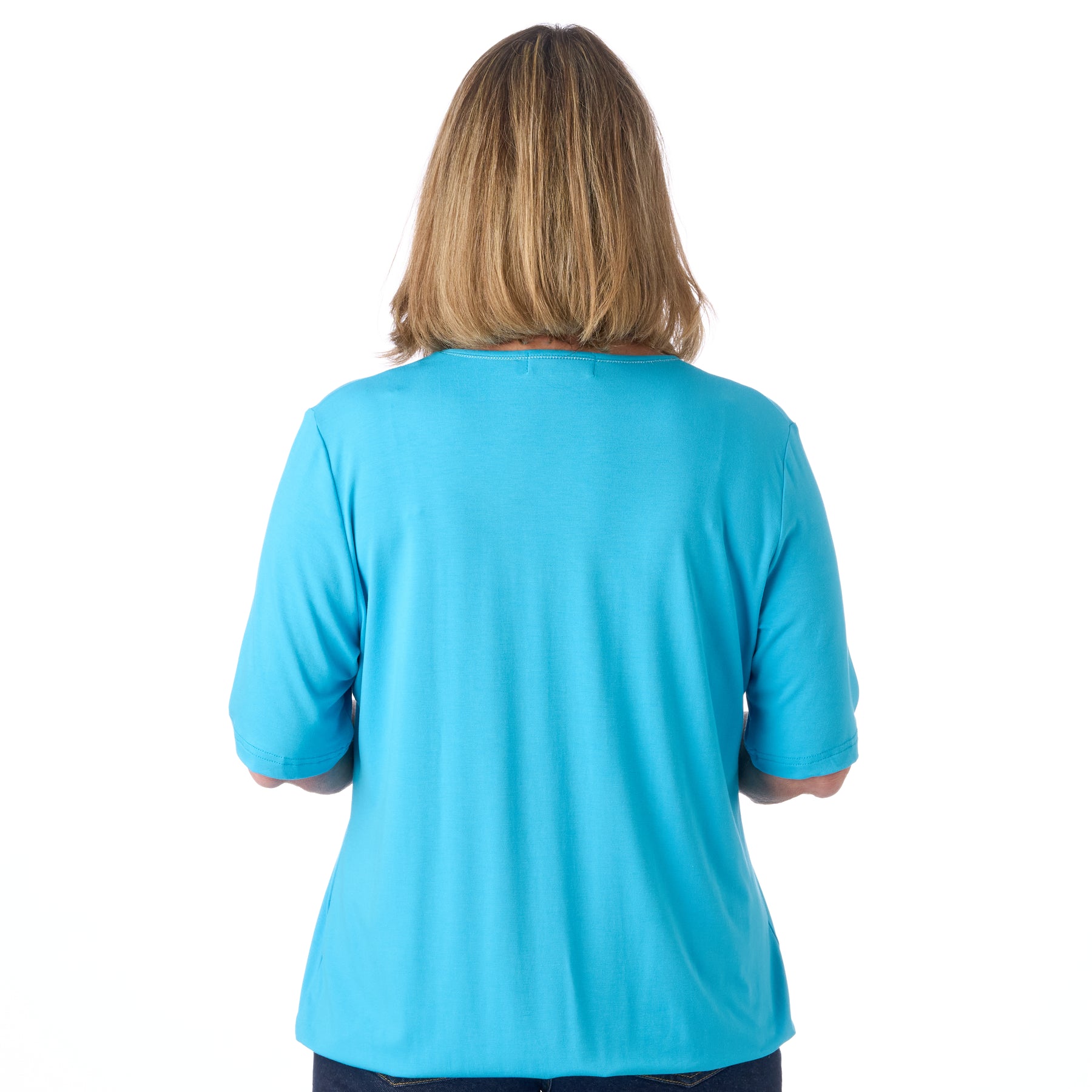 Blusen är tillverkad av bambu som är fantastisk att ha på sig oavsett väder och vind. På vintern håller den dig varm genom att bevara den varma luften. Och på sommaren håller andningsförmågan dig sval genom att transportera bort fukt från huden så att den kan avdunsta.