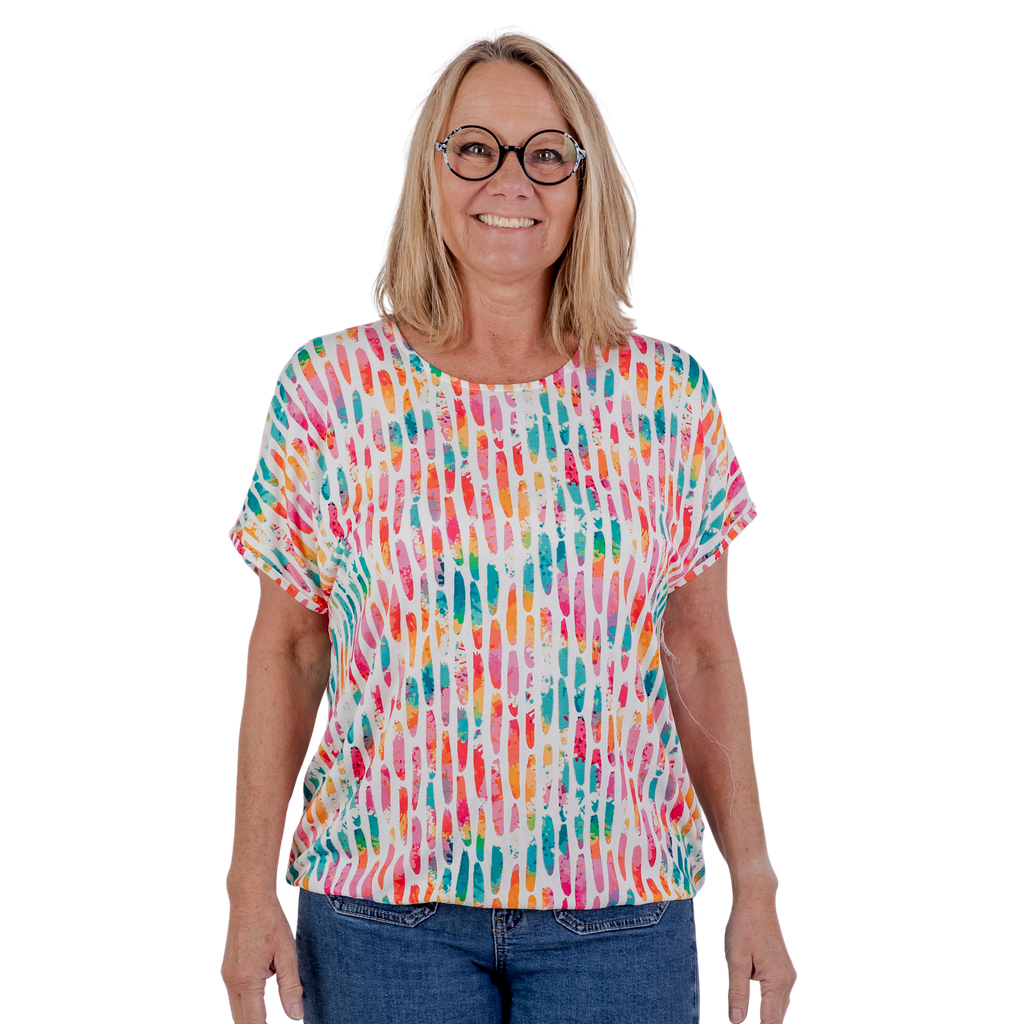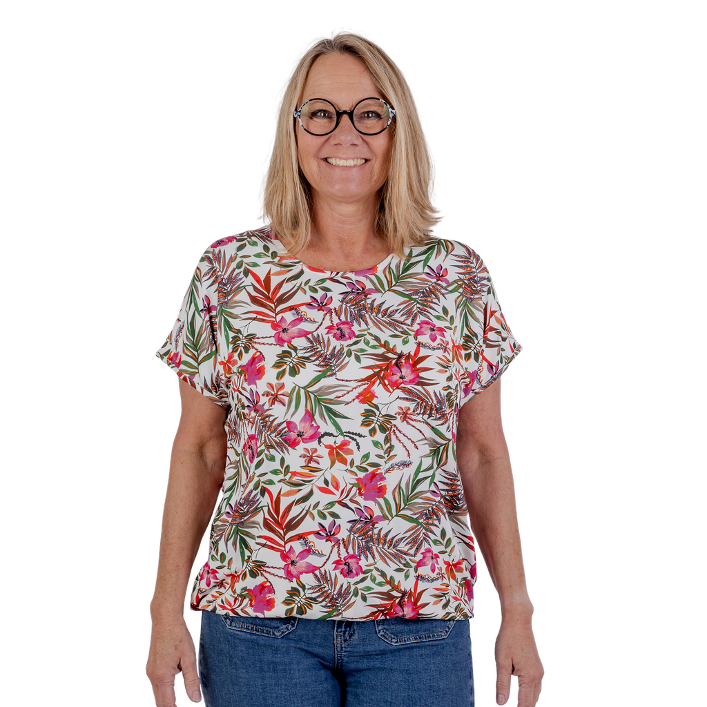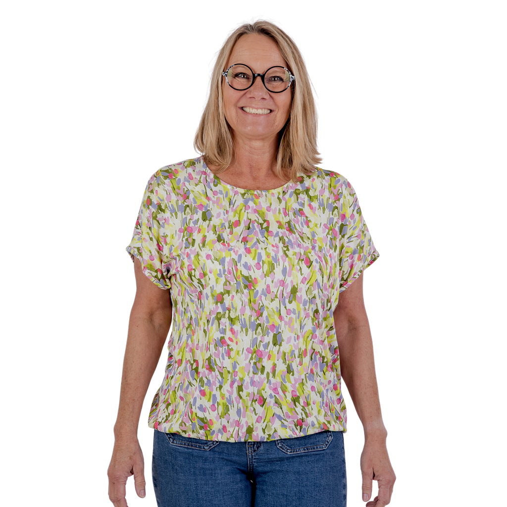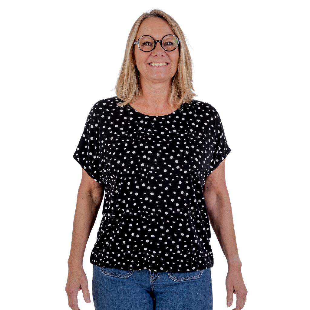 Blusen är tillverkad av en kvalitetsviskos som du kan tvätta om och om igen utan att den tappar passform eller färg.