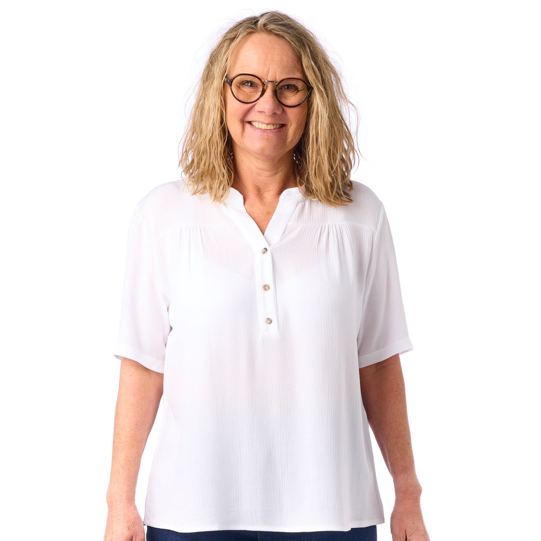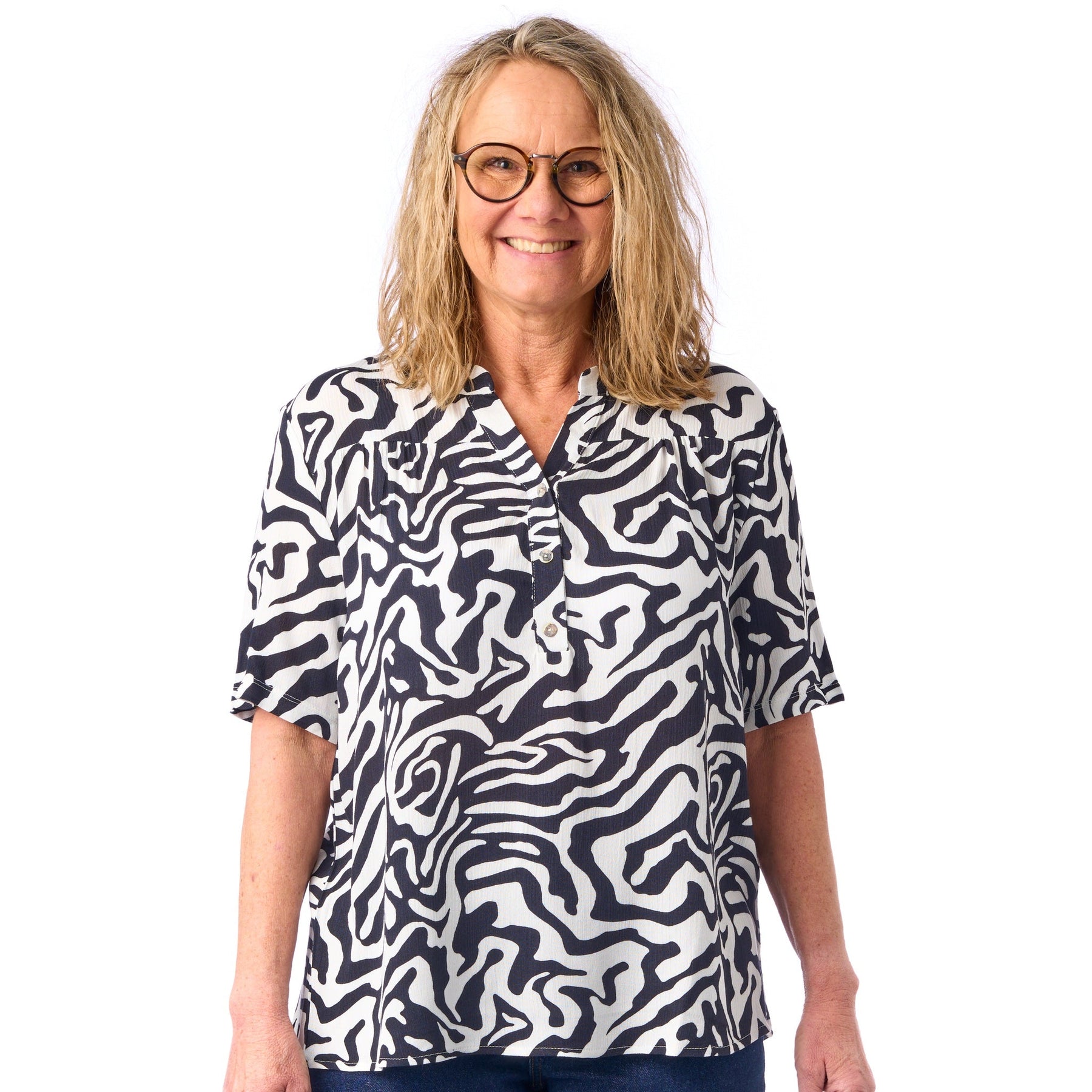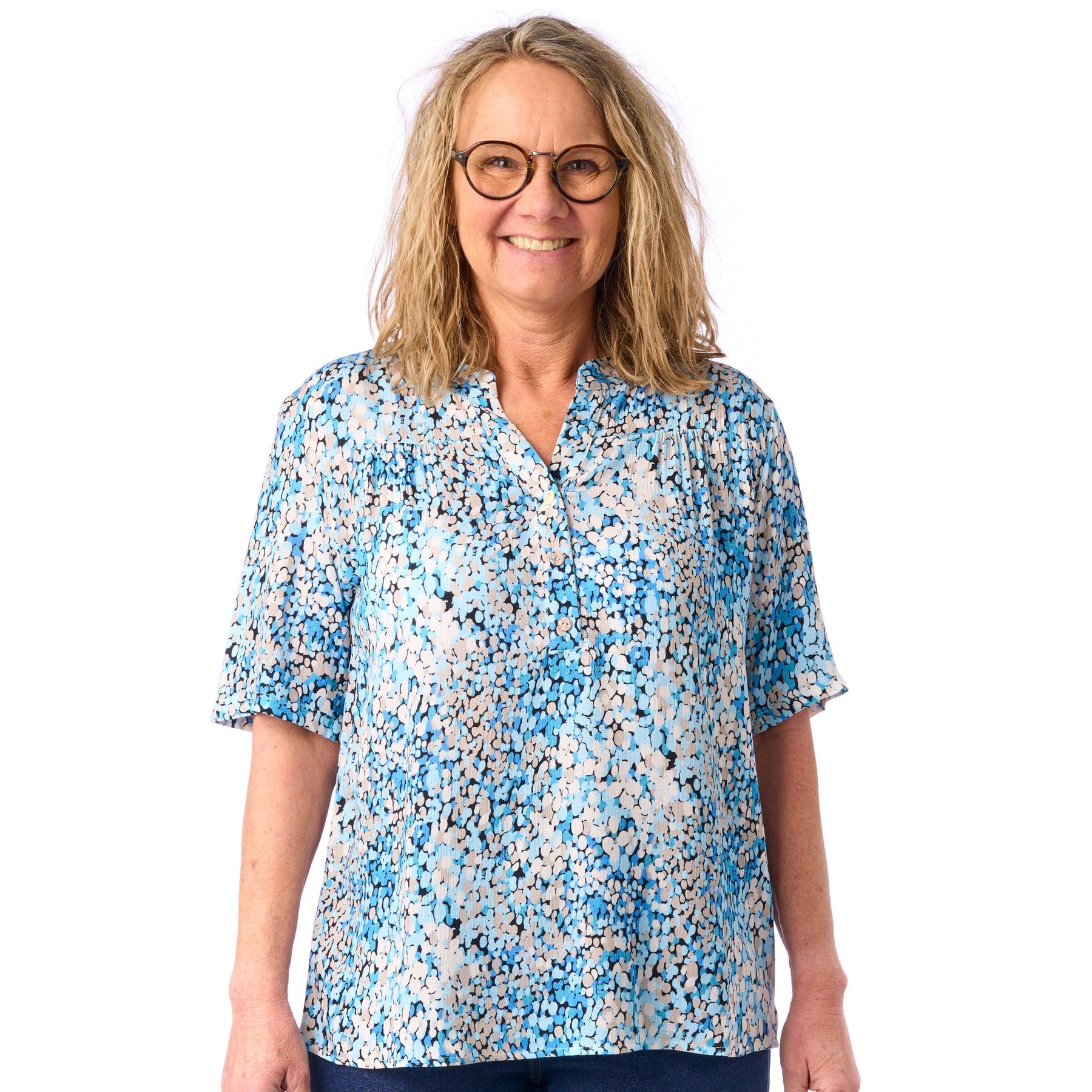 De korta ärmarna gör blusen lätt och luftig — perfekt för varma dagar då du vill ha det bekvämt utan att kompromissa med stilen.