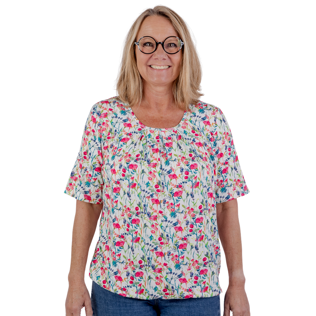 Blusen är tillverkad i en kvalitetsviskos som du kan tvätta om och om igen utan att den tappar passform eller färg.