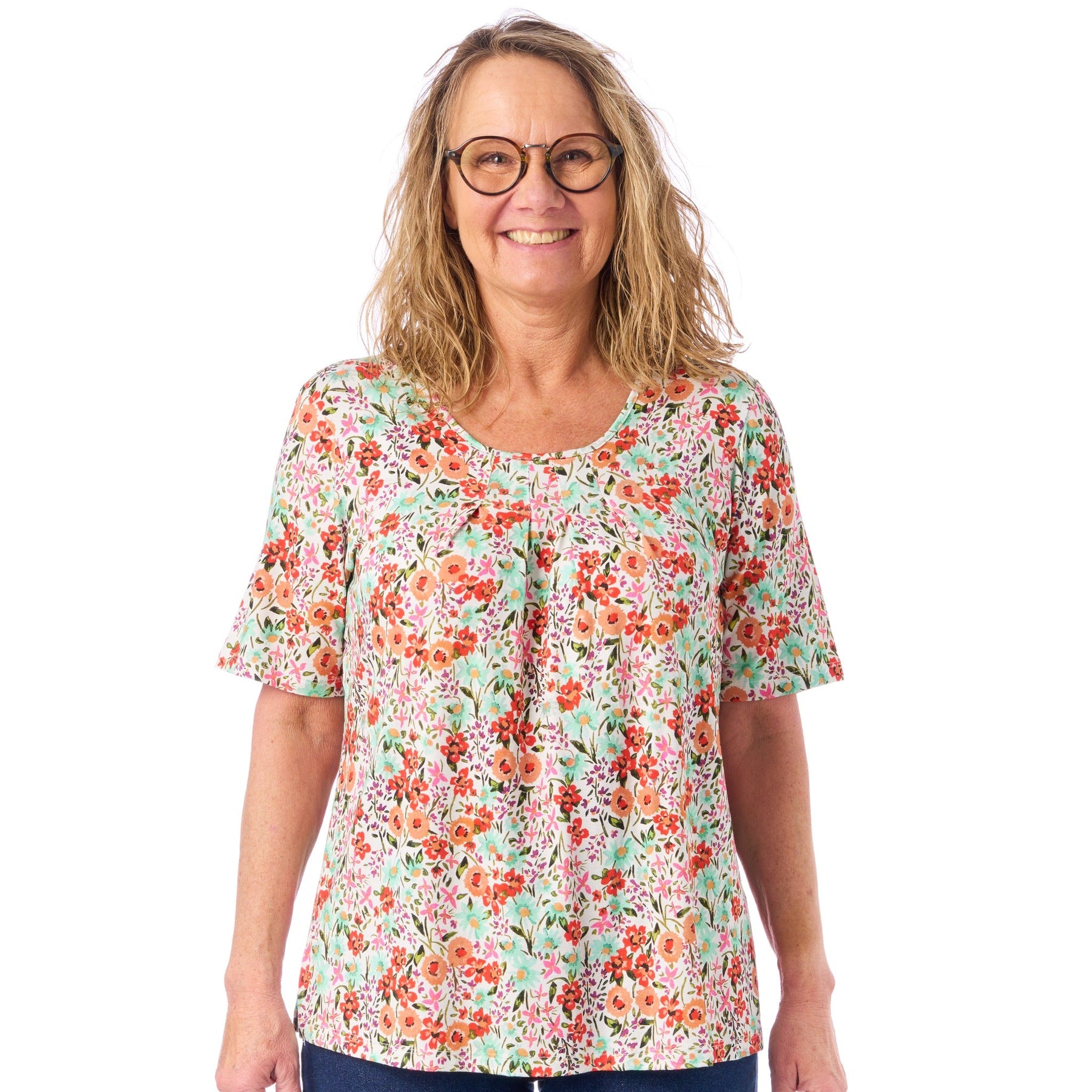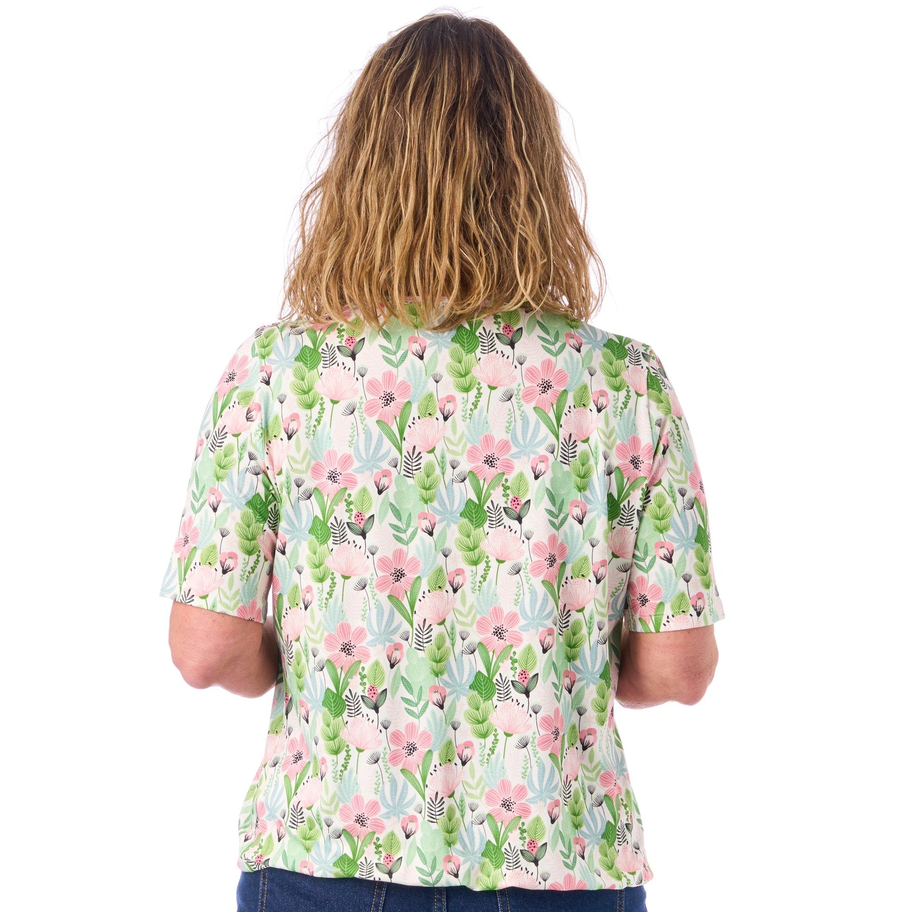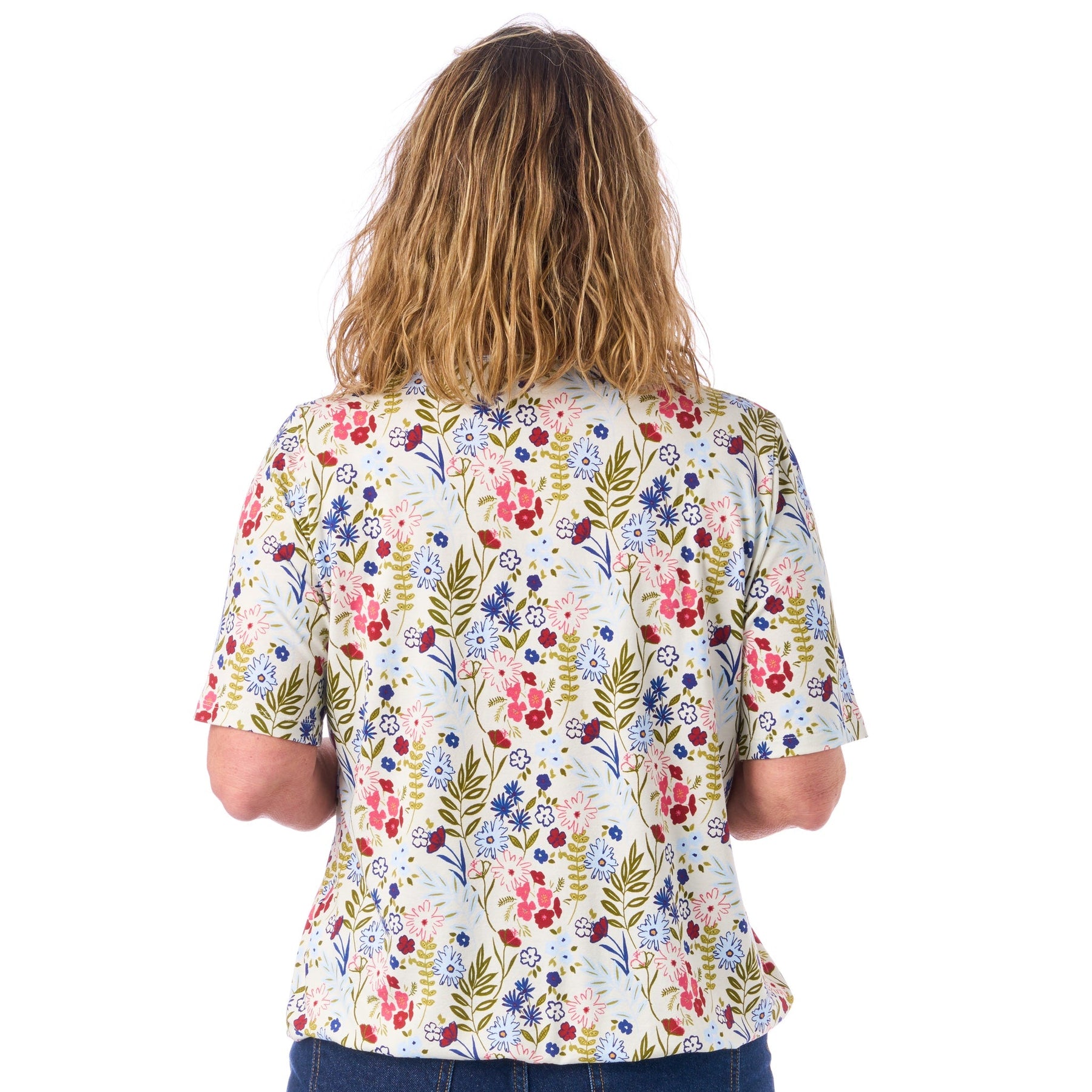Vi har medvetet designat de korta ärmarna på blusen lite längre än det man kanske är van vid. Det gör att ärmarna inte kryper upp och kommer i vägen när du tar på dig en jacka eller tröja.