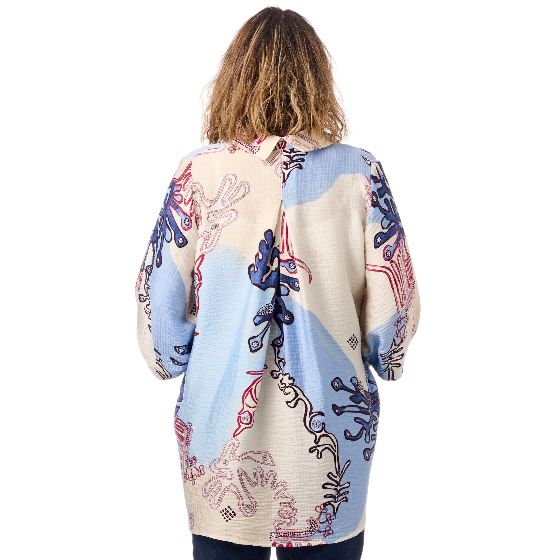 Denna vackra skjorta är för dig som älskar att sticka ut med en kreativ och färgstark look.